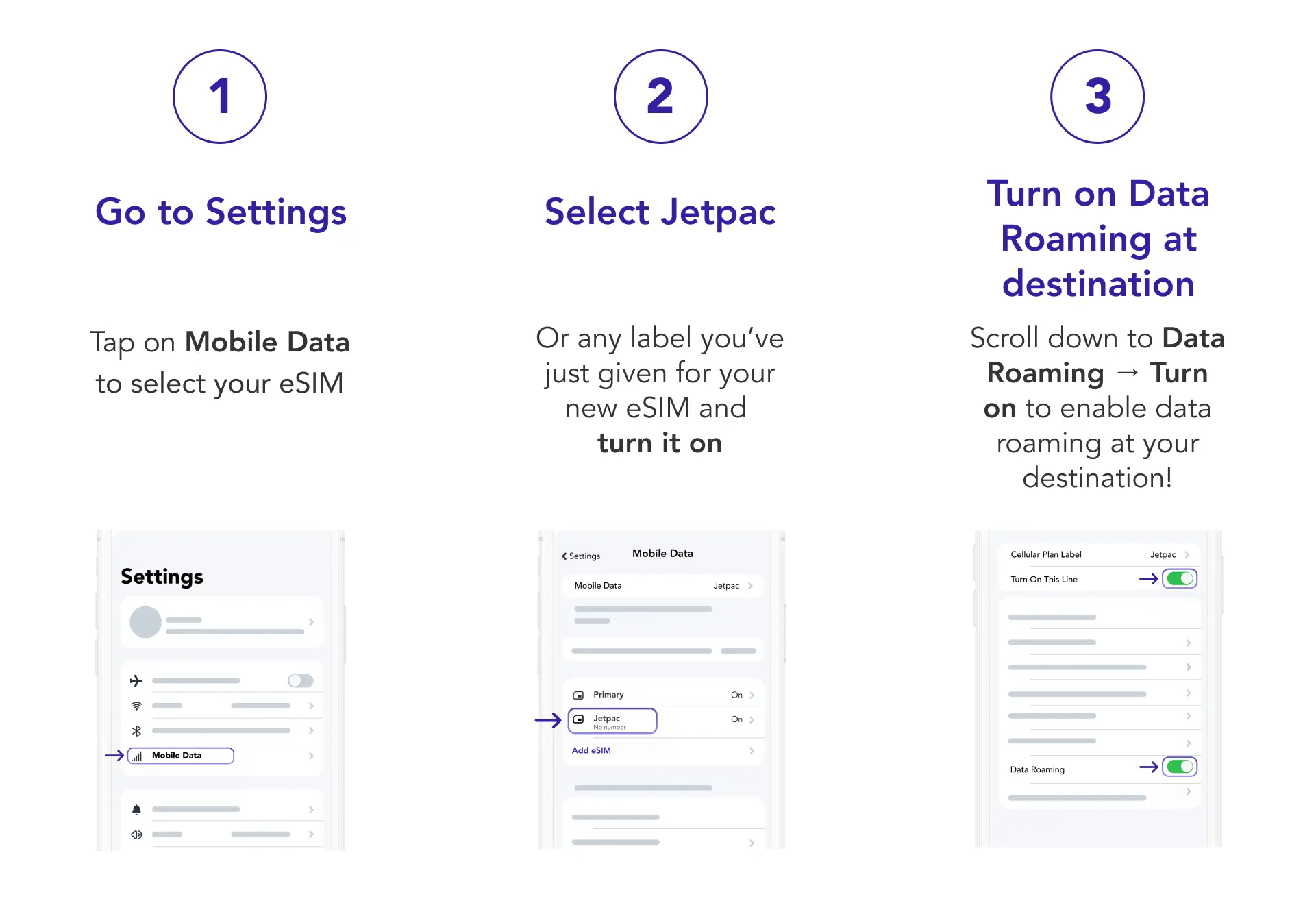 You'll need to label your eSIM via your phone settings as Jetpac, so you won’t get confused later on!